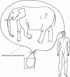 Рис. 16. Огромный объект, помещенный в виртуальное пространство, заставляет его отдаленный фрагмент оторваться и перейти к самостоятельному существованию