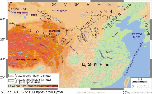 Агония дружины Фу Дэна затянулась до 394 г., но он пережил своего врага Яо Чана на один год. Яо Син, унаследовавший власть в Младшей Цинь, сначала разбил войска Фу Дэна, который был при этом убит, а потом его сына, на чем и закончилось самостоятельное существование народа ди. Остатки этого героического племени смешались с победителями-тибетцами; впоследствии они вошли в состав средневековых тангутов, или дансянов [226] . Но нас сейчас больше занимает положение и состояние победившего государства — Младшей Цинь. Ведь оно тоже, включив в себя большое количество местных жителей, стало тибето-тангуто-китайской химерой и, как таковое, оказалось лицом к лицу с сяньбийцами, окружавшими его с востока, запада и севера, где прикрывавшие Шэньси ордосские хунны испытали на себе силу табгачского оружия.