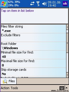Выглядящая несколько странно опция Files, имеет достаточно большие возможности поиска файлов и манипуляций с найденным.
