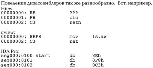 Пользуясь случаем, акцентируем внимание на сложностях, которые подстерегают при написании собственного ассемблера (дизассемблера). Документация Intel местами все же недостаточно ясна (как в приведенном примере), и неаккуратность в обращении с ней приводит к ошибкам, которыми может воспользоваться разработчик защиты против хакеров.