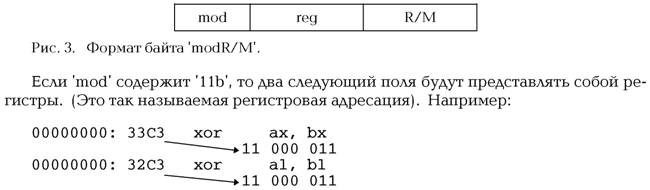 Первым ключевым элементом является байт modR/M.