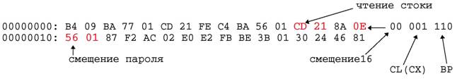 Все, знакомые с ассемблером усмотрят в этом действии загрузку длины пароля (первый байт строки) в счетчик. Неплохо для начала? Мы уже дизассемблировали часть файла и при этом нам не потребовалось знание ни одного кода операции, за исключением, быть может, 0CDh, соответствующего команде 'INT.