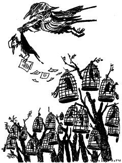 Через месяц от недавнего «золотого века» не осталось и следов. Скворцы заленились, коростели стали фальшивить, сорока-белобока воровала без просыпу, а на воронах накопилась такая пропасть недоимок, что пришлось прибегнуть к экзекуции. Дошло до того, что даже пищу орлу с орлицей начали подавать порченую.