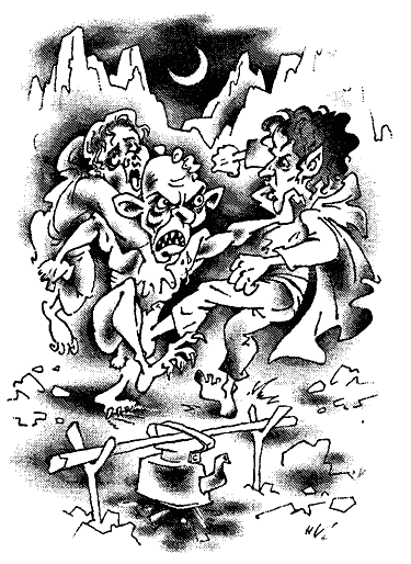 Вскочив на ноги, монстр отбежал в сторону и, подняв локоть, боком рухнул сверху на жертву, круша лежащему ребра. Не выдержавшие доски палубы проломились, и оба «рестлера» рухнули в трюм прямо в какой-то белый порошок навроде муки. Пендальф было дернулся выползти из-под навалившейся на него туши, но не тут-то было – монстр ухватил старика за ногу и принялся что было сил выкручивать ее. Увлекшись процессом, Диабло не заметил, как Пендальф тянется свободной рукой к валяющемуся неподалеку замечательному предмету корабельного имущества – обоюдоострому ломику.