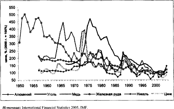 Волатильность цен, связанная с мировой конъюнктурой, накладывается на проблемы сырьевых отраслей. Технические открытия, внедрение новых способов производства изменяют объем спроса. Классические примеры тому – массовое внедрение материалов, замещающих медь, во второй половине XX в., [178] рост потребности в палладии, обусловленный повышением требований к чистоте выхлопных газов в автомобильной промышленности.