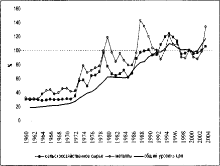 В краткосрочной перспективе объемы производства сырья слабо зависят от цен мирового рынка. Спрос же на сырьевые товары тесно связан с мировой экономической конъюнктурой. Он повышается при росте темпов развития мировой экономики и сокращается при их замедлении. [176] При ограниченной способности сырьевых отраслей наращивать и снижать добычу, цены на сырье колеблются значительно сильнее, чем на продукцию обрабатывающих отраслей. Данные рис. 3.3–3.9 иллюстрируют, насколько сильным оказывается влияние даже незначительного замедления темпов развития мировой экономики на динамику сырьевых цен.