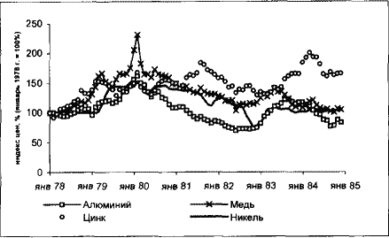 Еще один фактор нестабильности сырьевых рынков – их зависимость от политики. Характерный пример – развитие событий на рынке меди в конце 1940 – начале 1950-х годов. Начало корейской войны, рост потребности военной промышленности США привели к повышению спроса на этот металл. Быстро нарастить его добычу было невозможно. Отсюда скачок цен в начале 1950-х годов и затем последующее за окончанием войны нх снижение.