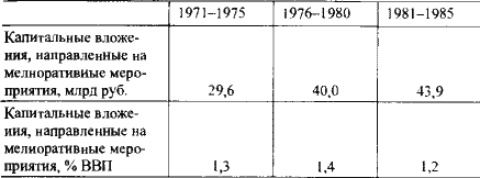 Многие проекты, в которые вкладывались значительные ресурсы, оказывались либо малоэффективными, либо бессмысленными. Характерный пример – мелиоративное строительство. По объему капитальных вложений эта отрасль опережала легкую промышленность (см. табл. 4.1, 4.2)