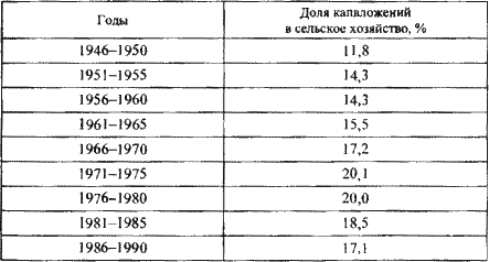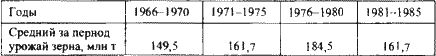 В 1960-х годах продукция сельского хозяйства росла примерно на 3% в год, в 1970-х – на 1%2. С 1971 по 1985 г. государственные капитальные вложения в агропромышленный комплекс составили 579,6 млрд руб. Рост чистой продукции сельского хозяйства оказался нулевым. Средние урожаи зерна в 1981–1985 гг. не превышали показателей 1971–1975 гг. (см. табл. 4.9).