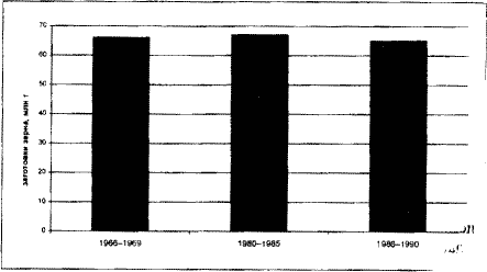 Потребление зерна продолжает превышать его закупки, резервы сокращаются. В 1960 г. заготовки зерна в стране, его расход и госрезерв составляли соответственно 46,7, 50,0 и 10,2 млн т, в 1963 г. – 44,8, 51,2 и 6,3 млн т.