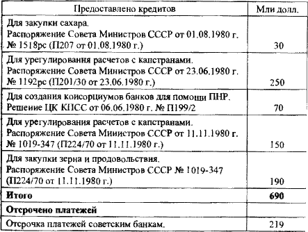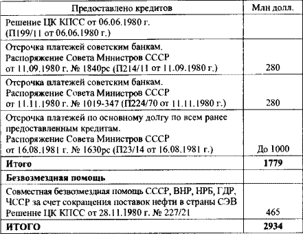 Источник: Госплан СССР в ЦК КПСС. Справка «О советской помощи ПНР в свободно конвертируемой валюте в 1980–1981 годах». 23 сентября 1982 г. См.: РГАНИ. Ф. 89. Оп. 66. Д. 8.