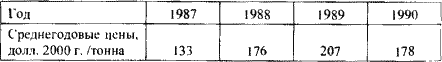 В 1989-1990-х годах на нарастающий кризис торгового баланса СССР накладывается еще один параметр – низкие урожаи зерновых в мире, превышение мирового спроса над предложением, формирование рынка продавца. Особенно сильно выросли цены на пшеницу (см. табл. 5.20).