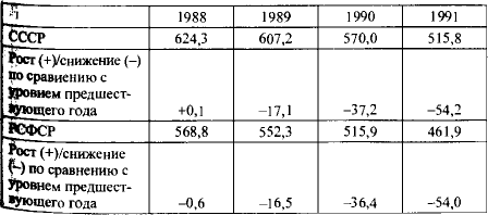 Источник: Топливно-энергетический комплекс СССР 1990 г. М.: ВНИИКТЭП, 1991. С. 108–109; Топливо и энергетика России. М.: Министерство топлива и энергетики РФ. 1999. С. 158, 408–409; Госкомстат России.