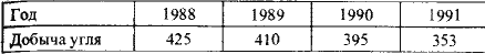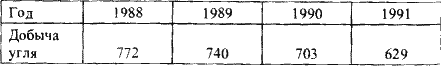 В 1989 г. промышленное производство перестает расти. С начала 1990 г. оно падает. В результате шахтерских забастовок начинается резкое падение добычи угля (см. табл. 6.4, 6.5).
