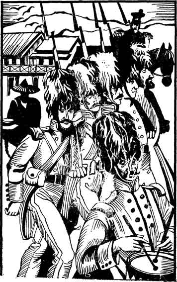 ...Солдаты пехотного полка сменили свои белые тропические куртки на красные парадные мундиры. В бурых медвежьих шапках, со штуцерами на плечах, эти рослые и белокурые люди кажутся гигантами. Их ряды, казалось, шагают все тверже, массивней и победней.