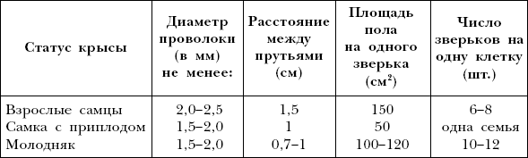 Самцов лучше держать в клетке небольших размеров, с проволочной передней стенкой. Расстояние между прутьями должно быть таким, чтобы зверек не мог пролезть между ними (табл. 2).