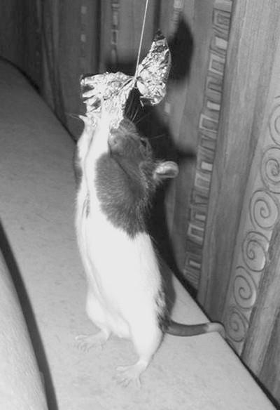 Широко распространена игра в «крыски-мышки» (правда, участвовать в ней придется и хозяину). Можно привязать к нитке шуршащую бумажку (например, фантик от конфеты) и намазать его чем-нибудь вкусным. После этого следует выпустить крысу из клетки, показать ей «угощение» и, как только зверек проявит к нему интерес (что непременно произойдет), потянуть нитку. Далеко не всякая крыса устоит перед искушением любыми средствами заполучить вожделенный фантик. Однако наибольший азарт эта игра вызывает у молодых крыс, причем при условии, что они не боятся открытого пространства.