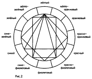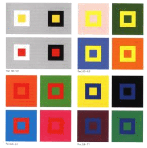 Понятие цветовой гармонии должно быть изъято из области субъективных чувств и перенесено в область объективных закономерностей. Гармония — это равновесие, симметрия сил. 1/1) учение физиологической стороны цветового видения приближает нас к решению этой проблемы. Так, если некоторое время смотреть на зелёный квадрат, а потом закрыть глаза, то в глазах у нас возникнет красный квадрат. И наоборот, наблюдая красный квадрат, мы получим его «обратку» — зелёный. Эти опыты можно производить со всеми цветами, и они подтверждают, что цветовой образ, возникающий в глазах, всегда основан на цвете, дополнительном к реально увиденному. Глаза требуют или порождают комплиментарные цвета. И это есть естественная потребность достичь равновесия. Это явление можно назвать последовательным контрастом. Другой опыт состоит в том, что на цветной квадрат мы накладываем серый квадрат меньшего размера, но той же яркости. На жёлтом этот серый квадрат покажется нам светло-фиолетовым, на оранжевом — голубовато-серым, на красном — зеленовато-серым, а зелёном — красновато-серым, на синем — оранжево-серым и на фиолетовом — желтовато-серым (рис. 31…36). Каждый цвет заставляет серый принять его последовательный и симультанный контрасты указывают на то, что глаз получает удовлетворение и ощущение равновесия только на основе закона о дополнительных цветах. Рассмотрим это ещё и с другой стороны. Физик Румфорд первым опубликовал в 1797 году в Никольсон-журнале свою гипотезу о том, что цвета являются гармоничными в том случае, если их смесь даёт белый цвет. Как физик он исходил из изучения спектральных цветов, В разделе, посвящённом физике цвета, уже говорилось, что если изъять какой-либо спектральный цвет, предположим, красный, из цветового спектра, а остальные окрашенные световые лучи — жёлтый, оранжевый, фиолетовый, синий и зелёный — собрать с помощью линзы вместе, то сумма этих остаточных цветов будет зелёной, то есть мы получим цвет дополнительный к изъятому. В области физики цвет, смешанный со своим дополнительным цветом, образует общую сумму всех цветов, то есть белый цвет, а пигментная же смесь даст в этом случае серо-чёрный тон. Физиологу Эвальду Герингу принадлежит следующее замечание: «Среднему или нейтральному серому цвету соответствует то состояние оптической субстанции, в котором диссимиляция — расход сил, затраченных на восприятие цвета, и ассимиляция — их восстановление — уравновешены. Это значит, что средний серый цвет создаёт в глазах состояние равновесия». Геринг доказал, что глазу и мозгу требуется средний серый, иначе, при его отсутствии, они теряют спокойствие. Если мы видим белый квадрат на чёрном фоне, а затем посмотрим в другую сторону, то в виде остаточного изображения увидим чёрный квадрат. Если мы будем смотреть на чёрный квадрат на белом фоне, то остаточным изображением окажется белый. Мы наблюдаем в глазах стремление к восстановлению состояния равновесия. Но если мы будем смотреть на средне-серый квадрат на средне-сером фоне, то в глазах не появится никакого остаточного изображения, отличающегося от средне-серого цвета. Это означает, что средне-серый цвет соответствует состоянию равновесия, необходимому нашему зрению.