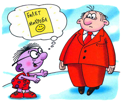 – Разные. Вот, например, такое «но» – допустим, микроб едет в автобусе… но в автобус входит контролёр. Билеты проверять. А как он у микроба билет проверит, если микроба без микроскопа вообще не видно?