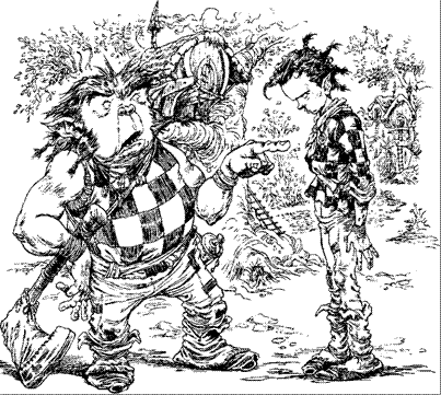 Всякий, кто сойдет с тропы и потеряет дорогу, неминуемо встретится с Хрумхрымсом — самым страшным и ужасным из всех существ, населяющих Дремучие Леса. Каждый тролль живет в страхе, опасаясь встречи с ним. Спельда не раз пугала своих старших детей, рассказывая были и небылицы о лесном страшилище.
