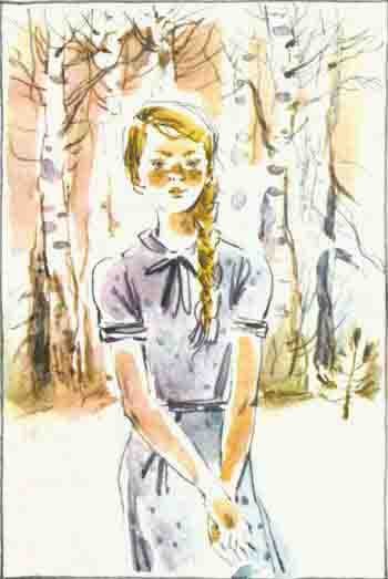 Катя закрыла лицо руками и побежала по лесной дороге, её сарафан замелькал между берёзами.