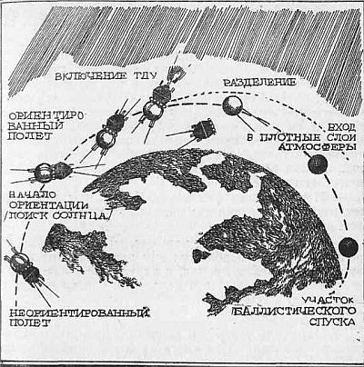 Схема спуска корабля «Восток».
