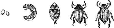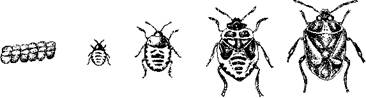 Цикл развития насекомых состоит из четырех этапов, или фаз: взрослое насекомое, яйцо, личинка, куколка (рис. 1). У прямокрылых, равнокрылых, трипсов и клопов стадия куколки отсутствует (рис. 2).