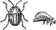 Рис. 14. Колорадский жук (взрослый жук, яйцекладка, личинки)