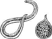Рис. 19. Картофельная нематода (самка, самец и поврежденный корень).
