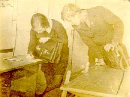 Ленька открыл дверь. На голову ему упала пара футбольных бутс. В дверь рядом вонзился нож. Ленька огляделся. Слева от двери, между кроватями, стоял стол. На столе стоял стул.