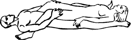 Примите исходное положение лежа на спине ногами друг к другу, так, чтобы было хорошее соприкосновение в области Муладхары. Ноги женщины должны быть наверху. Тела обнажены.