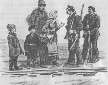 Матросы перешли через рельсы и преградили дорогу. Матери пришлось остановиться.