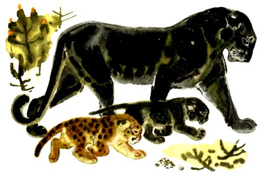 Охотники раньше спорили: леопард и пантера — два разных зверя или нет? Учёные доказали — зверь один. А то, что пантера чёрная, так это случайно. Чёрные пантеры родятся иногда от обычных, пятнистых леопардов. Такое бывает и у других животных: среди обычных попадаются и чёрные детёныши.
