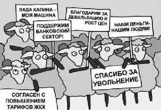 И ведь не скажешь, что такое пишут идиоты, нет, пишут умные люди, основная задача которых - превратить «дорогих россиян» в полных дебилов. Ведь и ежу ясно, что пенсионеры и прочие люди «с низким доходом» держат деньги в рублях не потому, что им лень спекулировать валютой и наживаться на повышении курса, получив «барыш всего за два похода в банк». Просто хлеб, картошку и прочие блага продовольственной демократической жизни эти люди покупают именно за рубли, а этих «реальных» рублей в связи с регулярным повышением цен у них становится всё меньше. И как здесь не вспомнить: «Не до жиру, быть бы живу»!