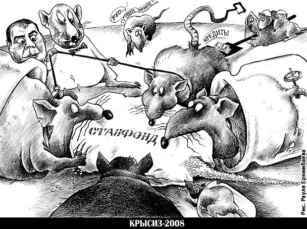 «Чтобы купить дом, американец взял в кредит у банка №1 100 долларов. Банк №1 решил дополнительно подзаработать. Он выпустил закладную ценную бумагу на этот дом и продал ее банку №2. Банк №2, скупивший кучу таких закладных у других банков, выпустил на них дериватив – ценную бумагу, обеспеченную уже не домом, а этими закладными – только бумагой. Банк №2 исходит из ожидания: умные аналитики считают, что недвижимость вот-вот подорожает и дом, отданный американцем в заклад банку №1 будет стоить 200 долларов, а это повышение цены обеспечит закладные и банка №1 и банка №2. Инвестиционные фонды в США и Европе покупают у банка №2 эти деривативы, в результате этих хитроумных комбинаций выпускается долговых обязательств уже на 300 долларов. В этот момент падают цены на недвижимость – домов построили слишком много. Заложенный дом американца теперь стоит не 100, а 50 долларов. Если теперь заемщик кредит не вернет и банки продадут его дом, то в обеспечение своих долговых обязательств перед инвестфондами получат всего 50 долларов и их долги фондам составят 250 долларов. Банки не могут расплатиться по выданным обязательствам – они банкроты. Начинается цепная реакция – они не могут выдать новых кредитов и обеспечить реальными деньгами уже выданные кредиты, предприятия без кредитов останавливаются. Наступает крах американской экономики».