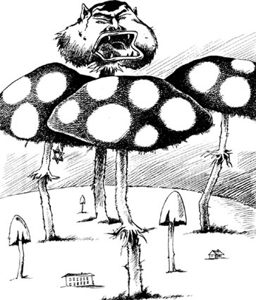 — Злодей! — кричал синьор Помидор. — Разбойник! Вор! Мятежник! Бунтовщик! Ты построил этот дворец на земле, которая принадлежит графиням Вишням, и собираешься провести остаток своих дней в безделье, нарушая священные права двух бедных престарелых синьор-вдов и круглых сирот. Вот я тебе покажу!