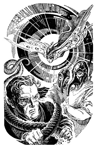 Но Ратов ни на минуту не пожалел, что отдал свой лазерный пистолет Толе. Сгибаясь под низким сводом кельи, он двинулся к проходу в келью Эоэмма И тотчас почувствовал, что вокруг его ног обернулись «змеи». Это были щупальца искусственных мышц, слепо служивших эмам. Живые путы захлестнули Арсению грудь и так сжали нагрудник, что тот перестал действовать… Сразу стало трудно дышать. Арсений отступил, и «удавы» ослабли.