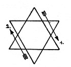 В этой гексаграмме вершина нижнего треугольника обращена вниз, поэтому её можно начертить одним круговым движением.