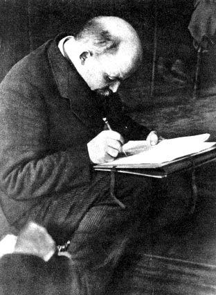 Поменьше политики. Политика “прояснена” полностью и сведена на борьбу двух лагерей: восставшего пролетариата и кучки рабовладельцев-капиталистов (с их сворой вплоть до меньшевиков и пр.). Об этой политике можно, повторяю, и должно говорить совсем коротко.