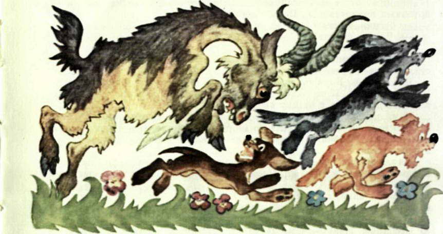 И со всех собачьих ног друзья пустились наутёк. Козёл — за ними.