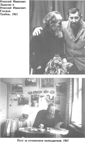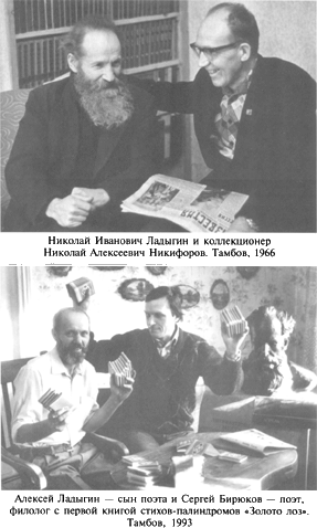 В то время мы познакомились с молодым тамбовским филологом Сергеем Бирюковым, который, вдохновившись творчеством отца, написал ряд статей и опубликовал их в альманахе «Поэзия» (1987, № 48) и журналах «Волга» (1988, № 7), «В мире книг» (1988, № 4), «Слово» (1998, № 3). К великому сожалению, отец не прочел этих публикаций. Вместо него мы, его дети, хотим выразить искреннюю благодарность Сергею Бирюкову, который вывел палиндромы Ладыгина в большую печать. Если бы не он, то лежали бы стихи отца в тумбочке и неизвестно, были бы они когда-нибудь опубликованы.