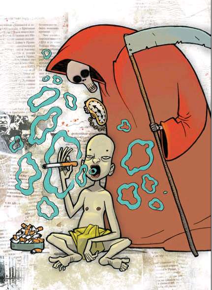 Что теперь делать: Вы видели когда-нибудь легкие курильщика? Черные такие в пятилитровой банке. Они умерли раньше, чем их хозяин. Хотите представить себе, как это? Закройте руками рот и нос и дышите жопой. Если получилось, вы заслужили перекур. Если нет – пора!