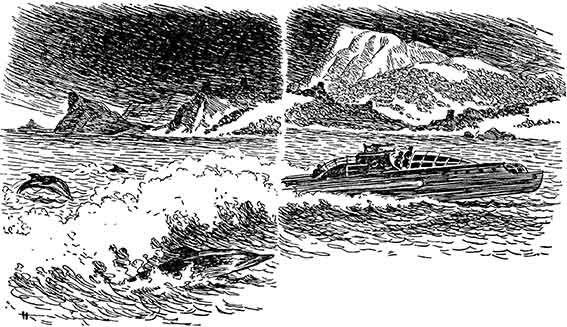 Восьмеркин, напрягая зрение, стал всматриваться в темноту. За кормой он ничего подозрительного не заметил, зато вдали, справа по носу, увидел едва белеющие буруны. В это время и слева за кормой, как от ракеты, осветился клочок неба: где-то очень далеко замигала зеленая точка.