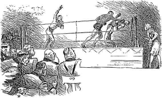 Прикрывая лицо перчатками, Ворбс отвалился спиной на смыкавшиеся в углу канаты и, обмякнув, сполз на землю…