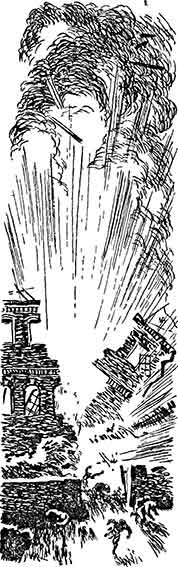 Она не поняла, вместе ли с пистолетным выстрелом или несколько позже дом дрогнул, словно под ним заколебалась почва, и озарился на миг багровым светом. Ее подхватило горячим ветром, приподняло и бросило под скамью…