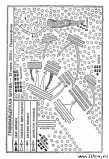 По линии всего левого крыла тевтонов завязалась упорная битва, что вполне отвечало намерениям великого магистра, так как он и сам хотел в начале сражения разгромить и рассеять войско Витовта, чтобы потом все силы бросить на поляков, которых он считал более серьезным противником.