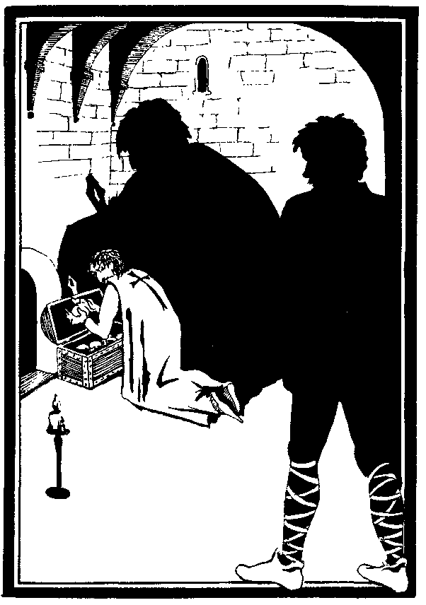 Принужденный подчиниться новому приказу Маленького Джона, барон решил скрыть от него правду и, под предлогом, что там находятся пленные, повести его за собой в ту часть замка, где сразу же можно будет получить помощь.