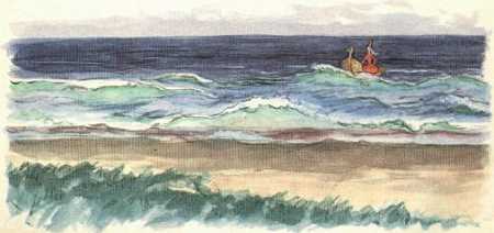 Запад тихо догорал.Вдруг конёк над ним заржалИ, толкнув его копытом,Крикнул голосом сердитым:«Спи, любезный, до звезды!Высыпай себе беды!Не меня ведь вздёрнут на кол!»Тут Иванушка заплакалИ, рыдаючи, просил,Чтоб конёк его простил.«Отпусти вину Ивану,Я вперёд уж спать не стану». —«Ну, уж бог тебя простит! —Горбунок ему кричит. —Всё поправим, может статься,Только, чур, не засыпаться;Завтра, рано поутру,К златошвейному шатруПриплывёт опять девица —Мёду сладкого напиться.Если ж снова ты заснёшь,Головы уж не снесёшь».Тут конёк опять сокрылся;А Иван сбирать пустилсяОстрых камней и гвоздейОт разбитых кораблейДля того, чтоб уколоться,Если вновь ему вздремнётся.