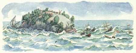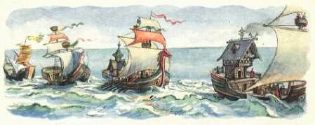 Чудо-кит зашевелился,Словно холм поворотился,Начал море волноватьИ из челюстей бросатьКорабли за кораблямиС парусами и гребцами.Тут поднялся шум такой,Что проснулся царь морской:В пушки медные палили,В трубы кованы трубили;Белый парус поднялся,Флаг на мачте развился;Поп с причетом всем служебнымПел на палубе молебны;А гребцов весёлый рядГрянул песню наподхват:«Как по моречку, по морю,По широкому раздолью,Что по самый край земли,Выбегают корабли…»