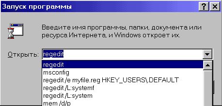 Команда Выполнить содержит список недавно использованных команд (MRU list)